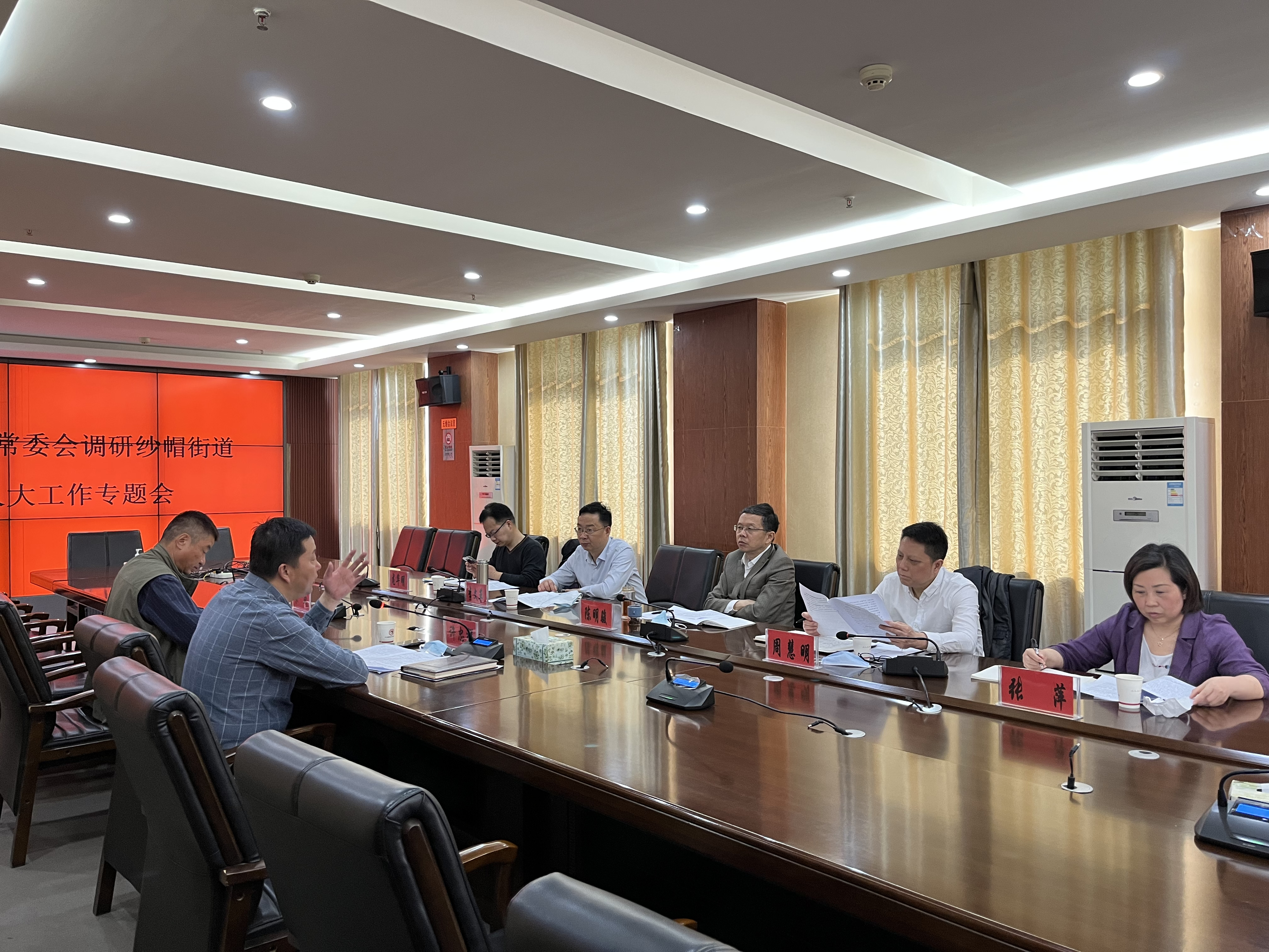 3月15日上午,陈明骏主任走进纱帽街,主持召开专题座谈会,听取了纱帽街重点工作推进和人大工作安排情况汇报。陈明骏主任听取汇报后,对纱帽街道党工委、办事处以及人大工作成绩给予充分肯定,勉励纱帽街在工委正确领导下,主动作为,积极进取,扎实做好疫情防控、城市更新、民生改善、社会稳定等各项工作,坚决有力、扎实高效担负起工委和群众赋予的职责使命。