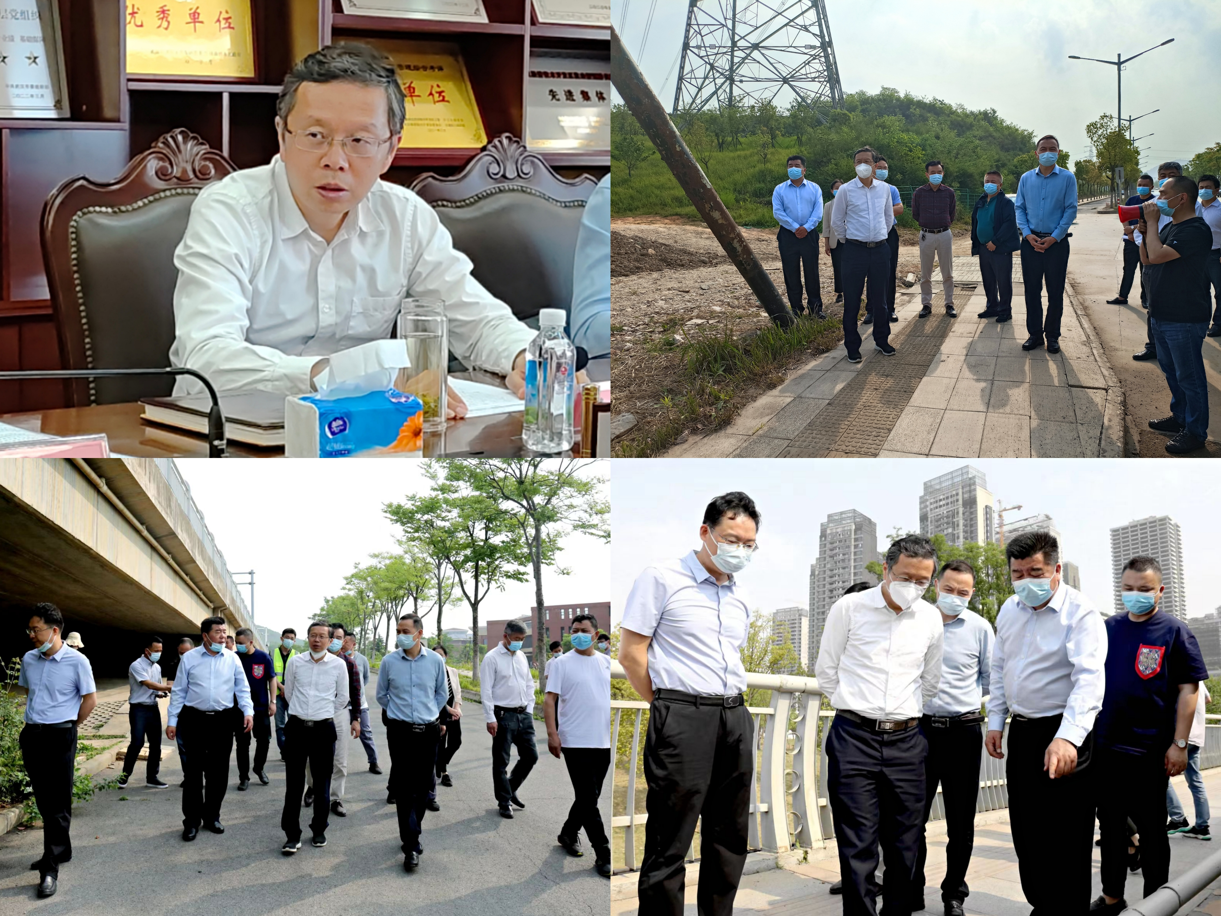 陈明骏现场查看了官莲湖大桥、军山第一大道桥、东风高架桥和江城大道南太子湖大桥等辖区内典型城市桥梁。每到一处,陈明骏认真查看桥梁和附属设施状况,仔细询问每座桥梁的基本情况、桥梁运行状态、管理维护工作,详细了解全区城市桥梁基本情况和管理体制机制,要求城管局等相关单位认真总结城市桥梁管理工作经验做法,补齐短板弱项。
