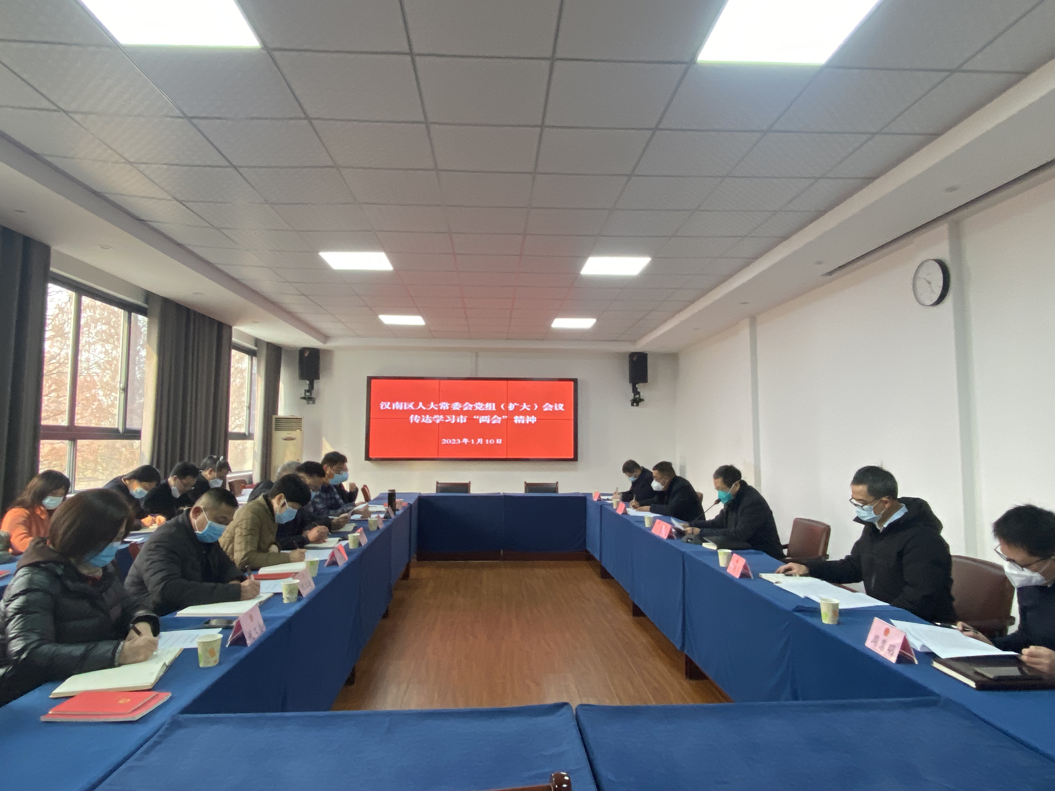 1月10日、1月18日,区人大常委会党组召开扩大会议,传达学习省十四届人大一次会议、市十五届人大二次会议精神及省、市主要领导讲话要求,部署贯彻落实工作。市人大代表、区人大常委会党组书记、主任陈明骏主持会议,并进行集中传达。