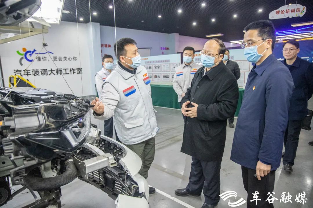 走进神龙公司三工厂总装车间,刘子清与有关负责人亲切交谈,详细了解神龙公司重点项目推进、基础设施建设、生态体系搭建有关工作,现场察看了车间生产线、汽车装调大师工作室和工匠家王雄大师工作室建设情况,为他们的“工匠精神”点赞。