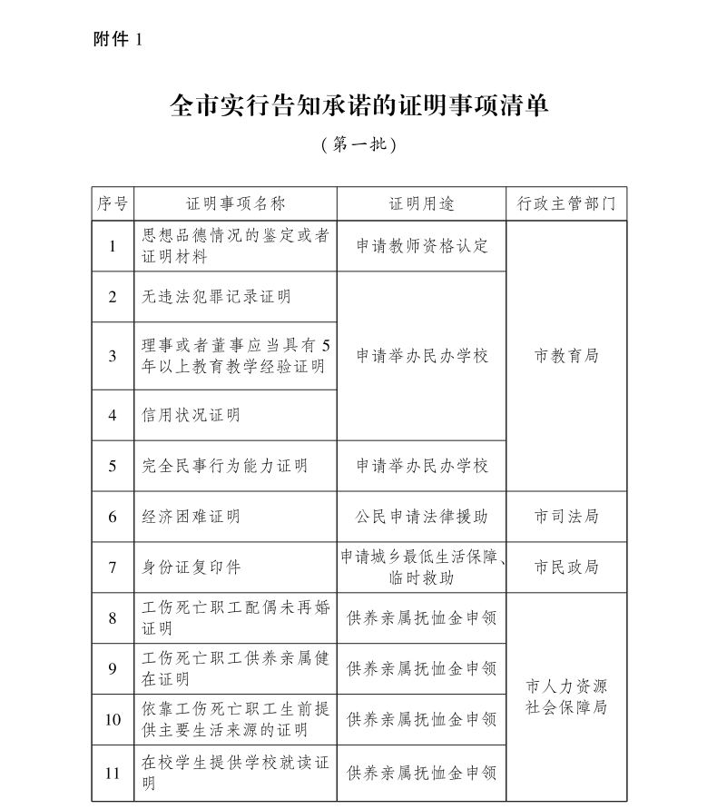 附件:1.全市实行告知承诺的证明事项清单(第一批)