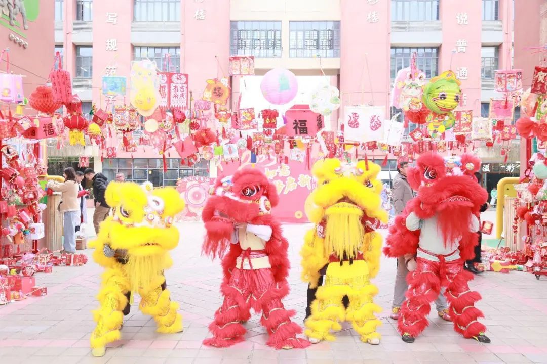 ▲武汉经开洪山未来学校里张灯结彩,孩子们穿上舞狮服装,舞动起狮子来有模有样。