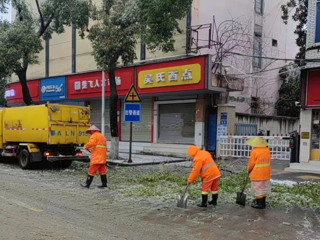 2月3日早上5点,沌阳市政环卫有限公司环卫班长李建梅带领同事们开始除雪,她负责珠山湖大道(全力五路--枫树二路)清扫保洁,至今已工作20余年。“除雪是个体力活,我们干活的时候并不冷,身上还蛮暖和。”李建梅说,她和同事对道路、站台积雪进行撒盐、清扫,铺设毛毡、清除倒伏的树木,最大限度保障道路通行安全。