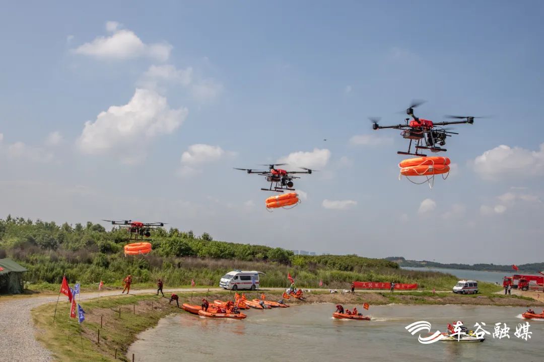 无人机、摩托艇、冲锋舟花式出动,车谷这场防汛救援演练很硬核