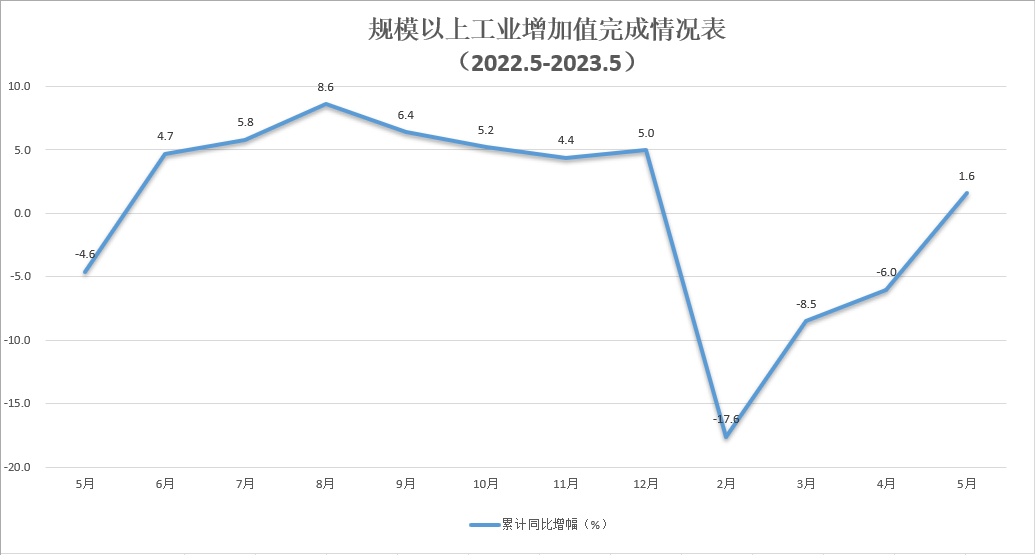 累计同比增幅(%) -4.6 4.7 5.8 8.6 6.4 5.2 4.4 5.0 -17.6 -8.5 -6.0 1.6