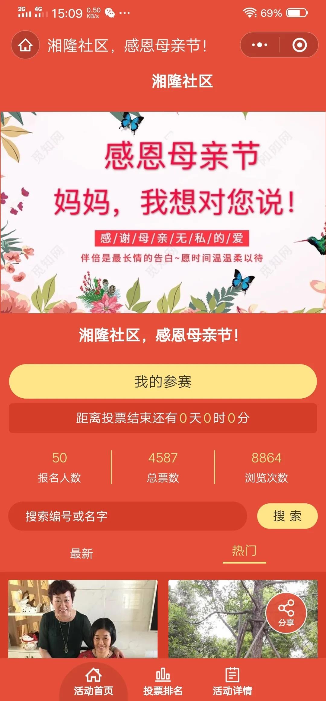 截止2020年5月8日,活动圆满结束,活动线上浏览次数达8848次,获得票数4587票,报名人数为50人,并为所有参加此次活动的居民、志愿者们颁发小礼品,并合影留念。