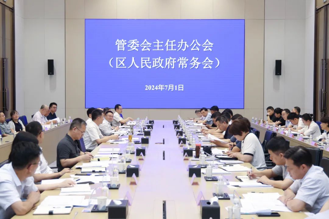 7月1日,工委副书记、管委会主任唐超主持召开管委会主任办公会,学习贯彻习近平总书记近期重要讲话重要指示精神,研究部署防汛排涝、大规模设备更新和消费品以旧换新等工作。