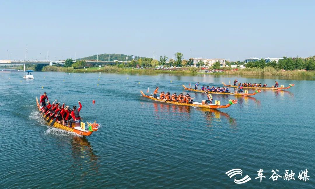 10月15日上午,2023“趣谷杯”第十五届湖北省龙舟大赛暨高校龙舟赛在武汉经开区军山新城举行。来自华中科技大学、江汉大学、武汉商学院等高校的12支大学生龙舟代表队和来自武汉经开区、新洲、仙桃、秭归等地的12支成人龙舟代表队,共同在武汉经开区奏响了一曲奋楫争先的“水上交响乐”。