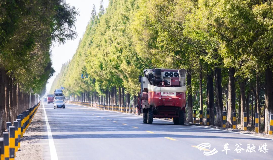放慢脚步,好好欣赏。几辆联合收割机隆隆而过,转弯,消失于连接柏油路的小路上。