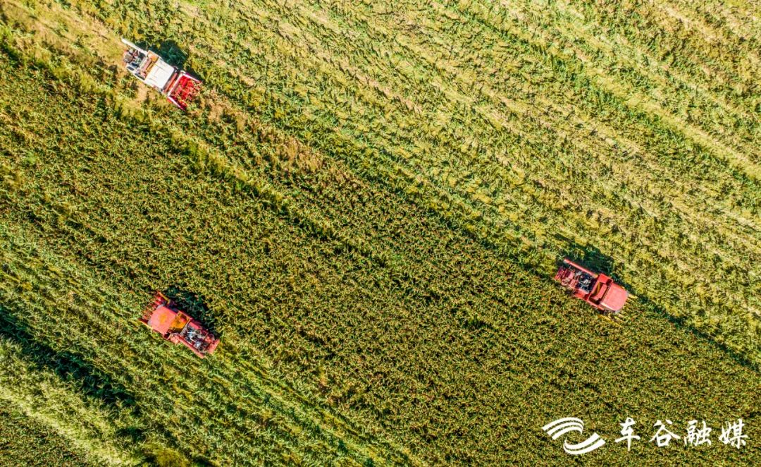 收割机来回穿梭