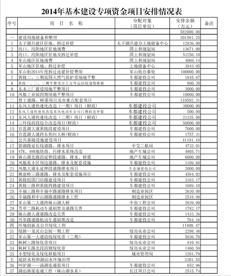 2014年基本建设专项资金项目安排情况表