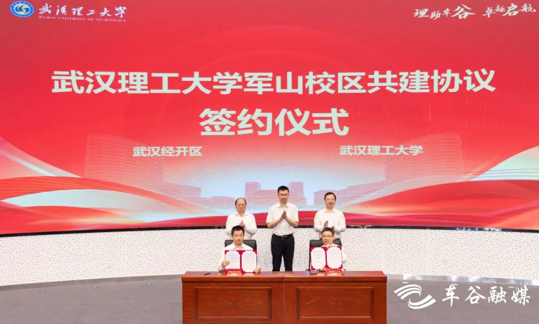 当天,武汉经开区与武汉理工大学签署武汉理工大学军山校区共建协议,刘子清、唐超向信思金、杨宗凯移交武汉理工大学军山校区开园钥匙。